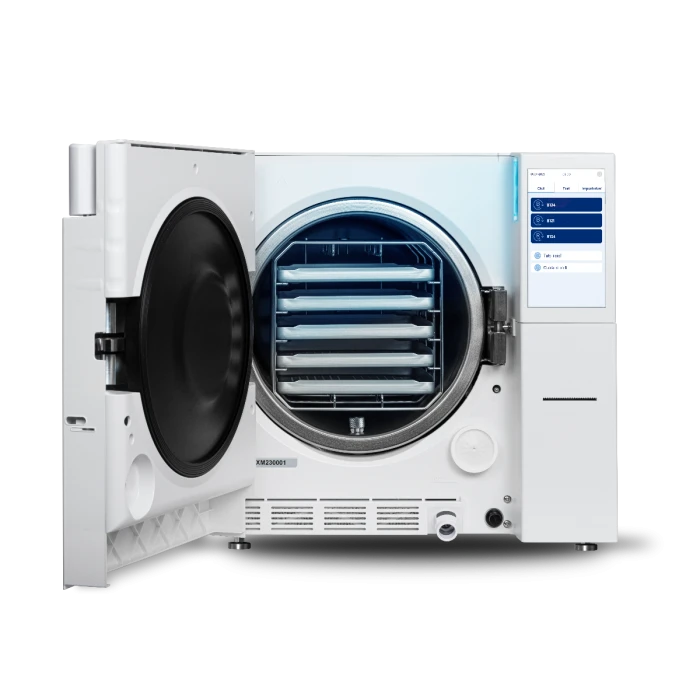 Autoklaw posiada 5 cykli w klasie B, trzy programy testowe (Vacuum, Helix, Bowie&Dick) oraz programy aktywowane hasłem w klasie S i N do szybkiej sterylizacji narzędzi nieopakowanych.