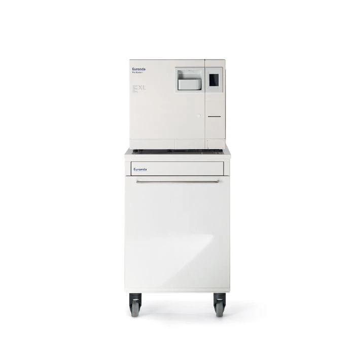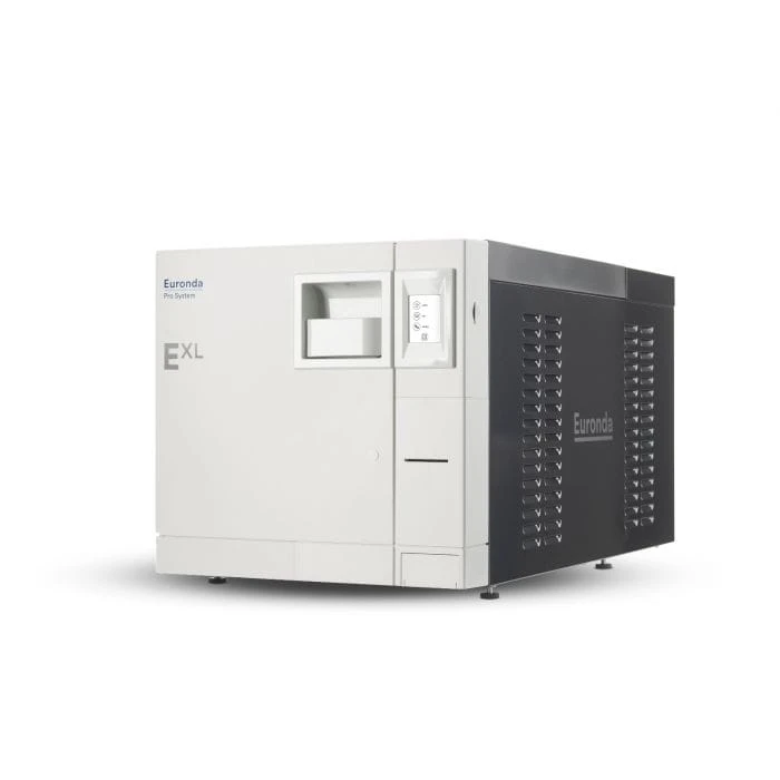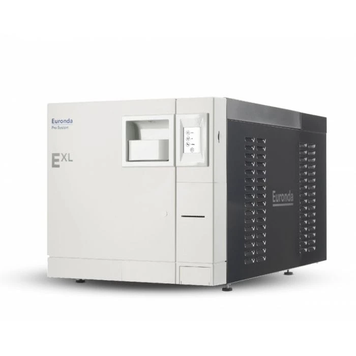 Autoklaw EXL jest modelem o największej pojemności spośród wszystkich autoklawów Euronda. Większa ilość pacjentów w klinice czy długie narzędzia nie są już ograniczeniem w sterylizacji. Dzięki ciągłemu kontrolowaniu procesu sterylizacji, autoklaw dobiera parametry pracy, aby zoptymalizować zużycie oraz czas cyklu i suszenia. EXL przy swojej zwiększonej pojemności załadunkowej potrzebuje tylko 700 ml wody na cykl i jest przy tym wydajny energetycznie – 3200W.