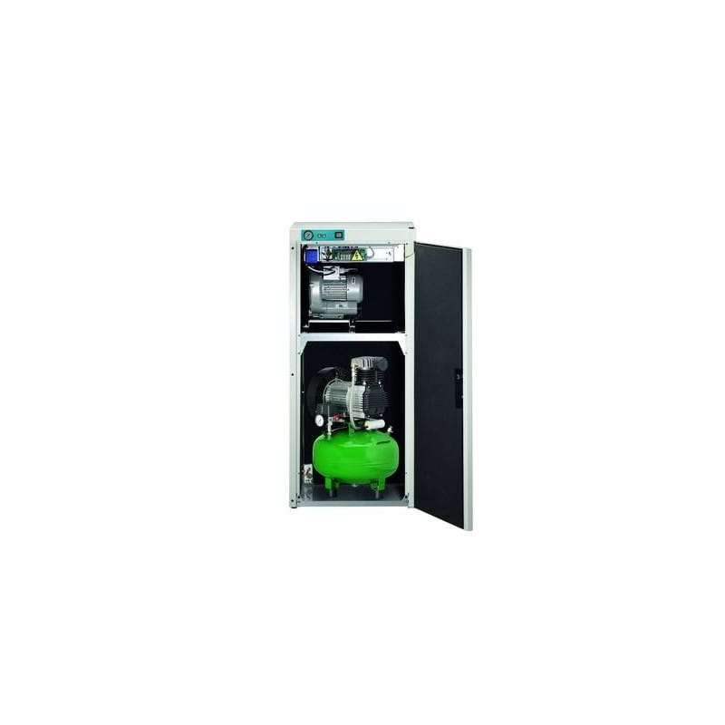 Kompresor bezolejowy z pompą ssącą w skrzynce wyciszającej