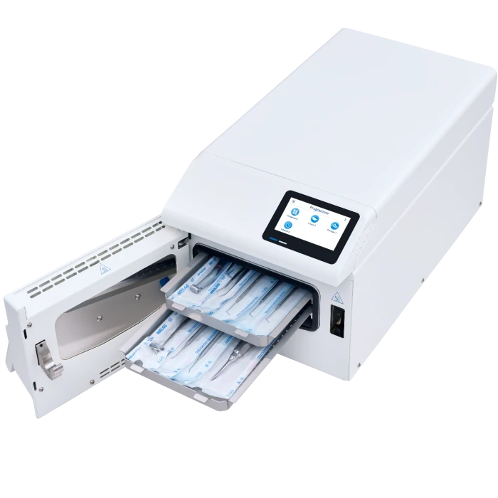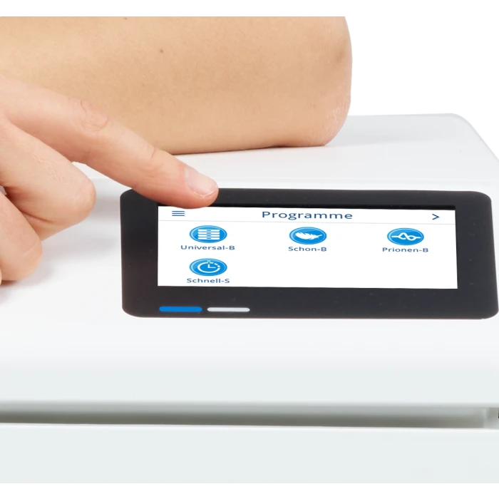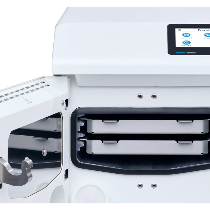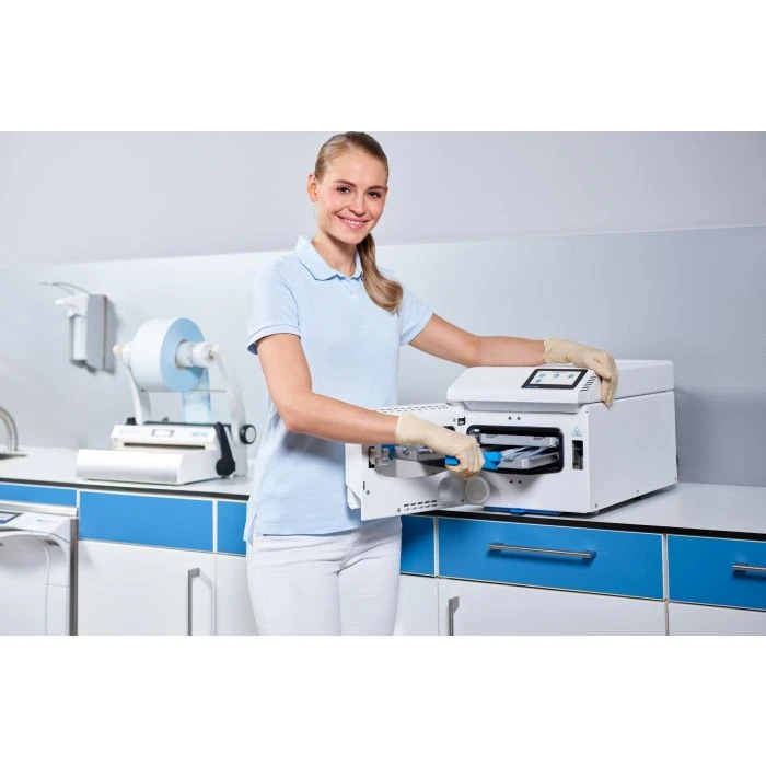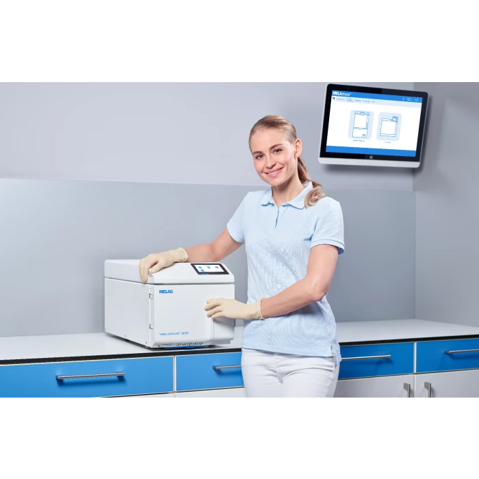Autoklaw jest wyjątkowy pod względem czasu sterylizacji, oferuje najszybsze cykle we wszystkich programach. Sterylizacja w klasie B/S od 6,5 min (plus suszenie). Suszenie DRYtelligence - inteligentny algorytm nie tylko umożliwia uzyskanie optymalnych rezultatów suszenia, ale również redukuje czas suszenia do 80%. Prosta i szybka obsługa dzięki wyświetlaczowi Smart Touch Display. Funkcja ProControl umożliwia szybkie zwolnienie wsadu oraz bezpośrednią identyfikację operatora na wyświetlaczu bez dodatkowego oprogramowania. Autoklaw jest gotowy do instalacji – po prostu Plug & Play. Zasilany w wodę destylowaną lub uzdatnioną z zewnętrznego zbiornika, posiada czujnik przewodności wody. Odpływ również realizowany na zewnątrz. Wydajny i oszczędny dzięki funkcji Power Save – tryb oszczędzania energii. Komora o pojemności 5 litrów mieści dwie tacki na narzędzia z możliwością załadunku do 2 kg instrumentów. Zapis danych odbywa się przez USB lub sieć Ethernet. Możliwość podłączenia drukarki MELAprint 80 do wydruku informacji o cyklach w formie tekstu i kodów kreskowych do szybkiego i bezpiecznego oznaczenia pakietów. Mały autoklaw Vacuclave 105 może być dodatkiem do tradycyjnego autoklawu w sterylizatorni, aby móc sterylizować narzędzia między pacjentami.