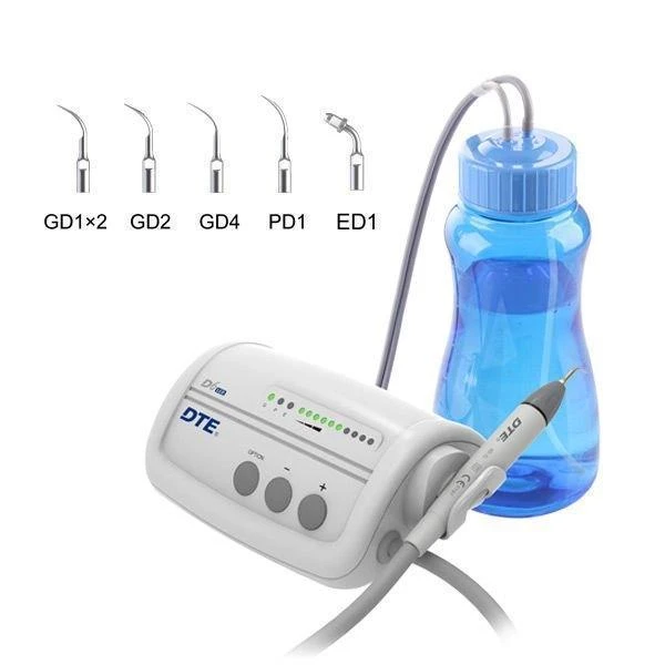 DTE-D6 LED (producent Woodpecker) to skaler w pełni autonomiczny, wyposażony w system automatycznego podawania wody (pojemnik 900 ml) - nie potrzebuje podłączania do unitu stomatologicznego.