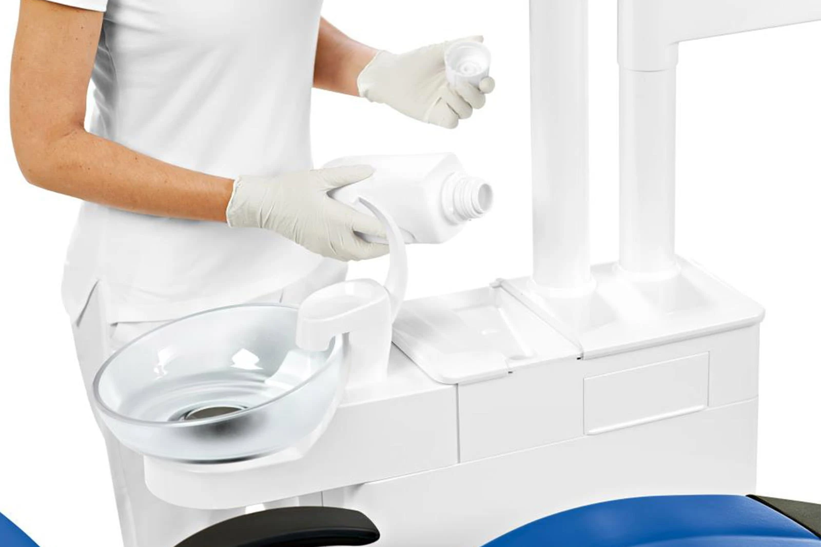 Stała dezynfekcja wszystkich przewodów wodnych za pomocą Dentosept S. Automatyczna funkcja dezynfekcji do regularnej intensywnej dezynfekcji. Może również być używany jako samodzielne źródło wody.