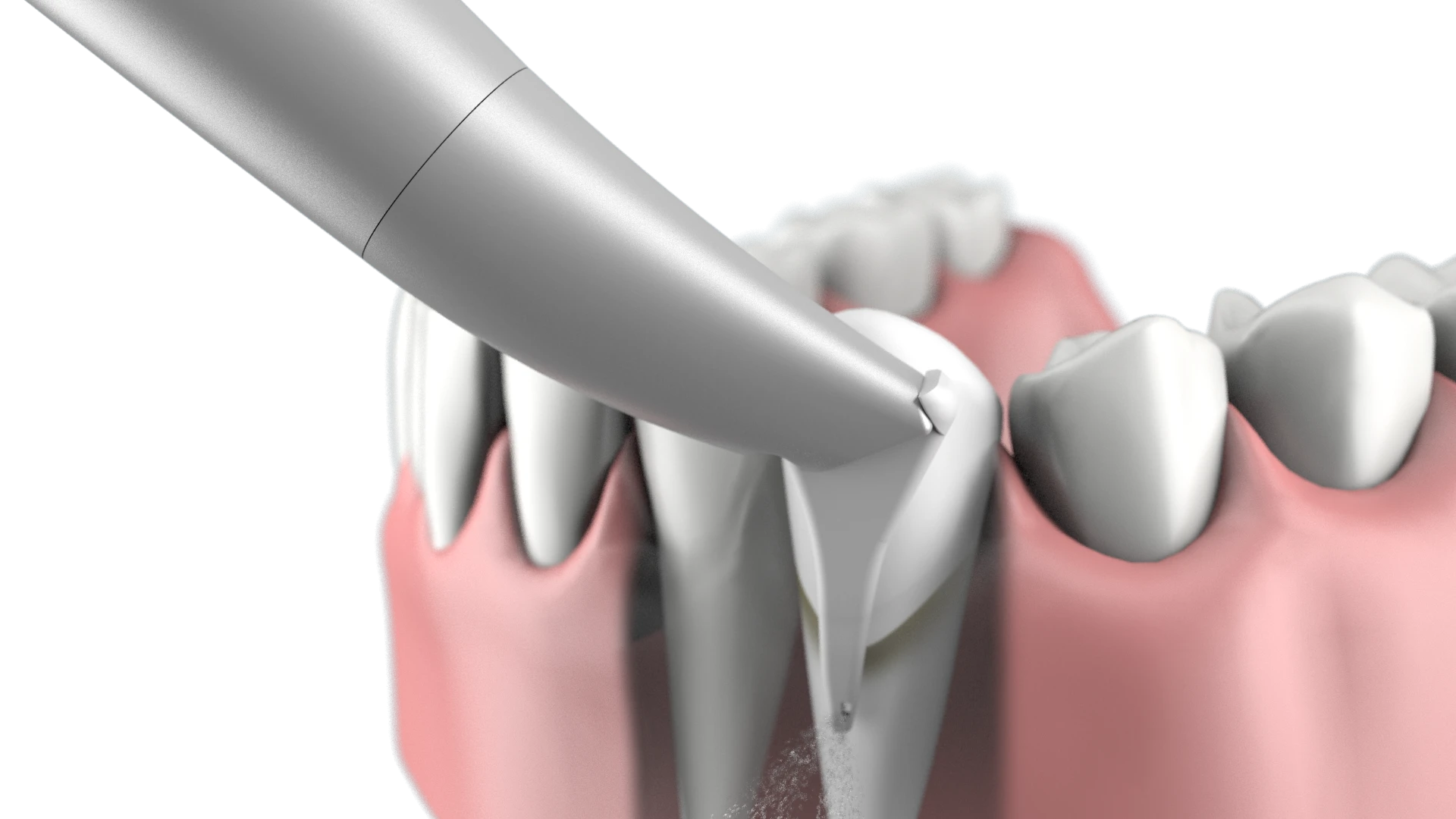 - Piaskowanie drobnoziarnistym piaskiem. Skutecznie usuwa osad nazębny za pomocą piaskowania powietrzem pod wysokim ciśnieniem. Zapobiega rozwojowi chorób jamy ustnej.