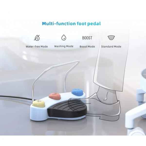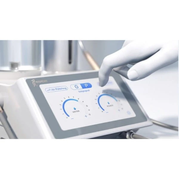 PIASKARKA w PT-A Nowoczesne rączki z małą, wąską dyszą skupiającą strumień wypływu piasku. Wbudowany specjalny, innowacyjny system zabezpieczający przed zapchaniem dyszy. Wydajny proszek do piaskarki (65µ) (14µ).Trzyczęściowa konstrukcja rękojeści do piaskowania jest łatwa do złożenia i rozłożenia w celu czyszczenia i konserwacji, do sterylizacji w autoklawie 134°C. Zbiornik do piasku o specjalnej konstrukcji pozwalającej na całkowite wykorzystanie proszku. Wielofunkcyjny sterownik nożny z trybem „BOOST".